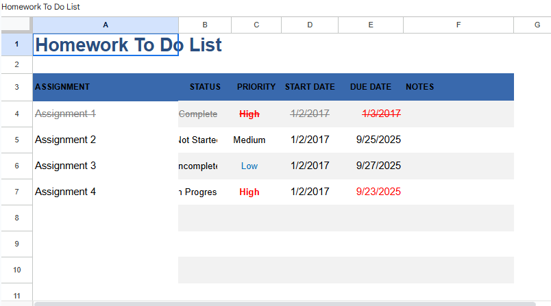إن homework to do list.xlsx يوفّر للطالب مساحة مهيكلة لتسجيل جميع واجباته ومهامه الدراسية، مع إمكانية تحديد المواعيد النهائية لكل مهمة، مما يساعد على ترتيب الأولويات وإنجاز الأعمال في الوقت المناسب. هذا الأسلوب المنظم لا يقلل فقط من احتمالية نسيان الواجبات، بل يُسهم أيضًا في تعزيز الانضباط الذاتي وزيادة كفاءة إدارة الوقت.